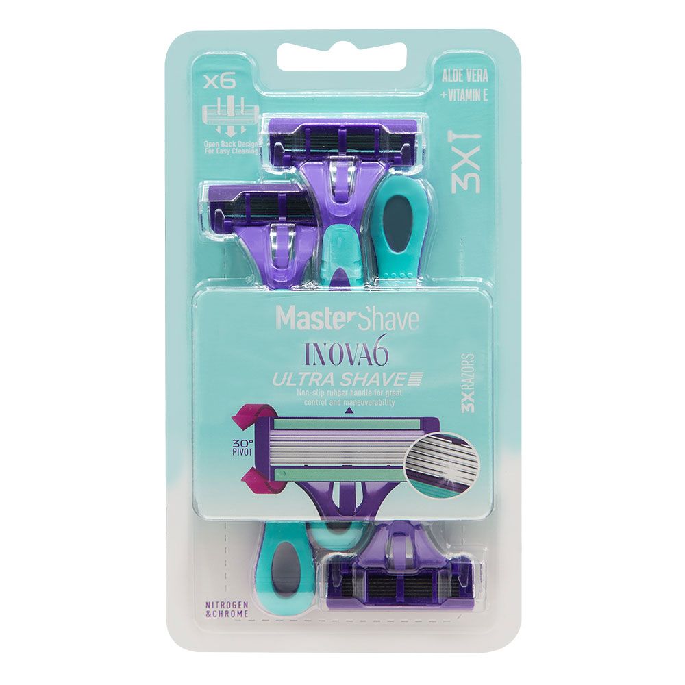"تیغ اصلاح زنانه 6 لبه 3 تایی اینووا 6 مستر شیو"